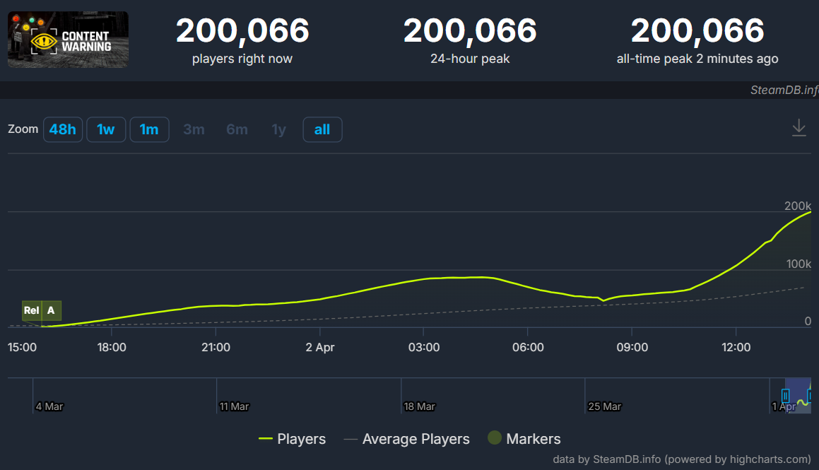 Аудитория Content Warning меньше чем за сутки превысила 4,5 млн человек благодаря раздаче в честь 1 апреля