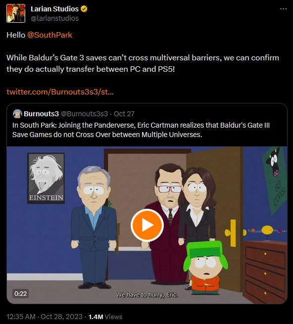 Larian Studios поправила создателей Южного парка по части сохранений BG3