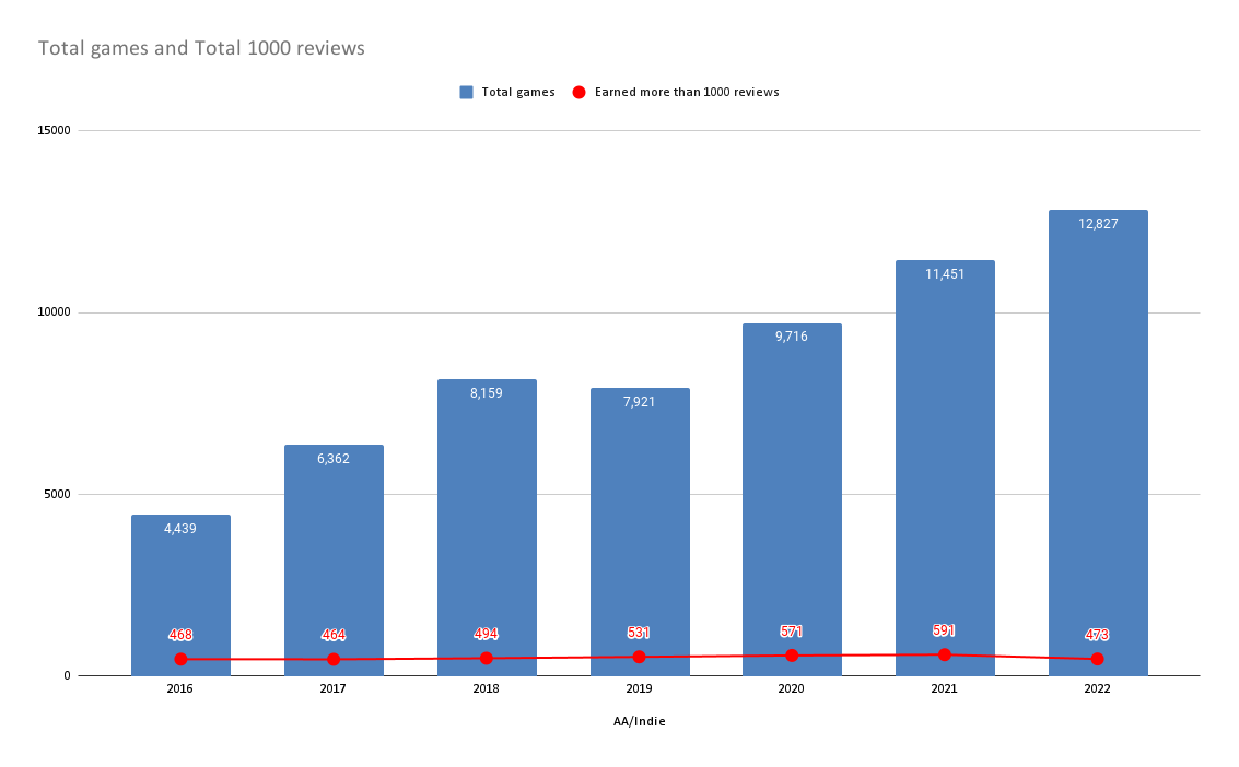 • В 2022 в Steam было выпущено более 12 000 инди-игр. Лишь ~550 (инфа из https://vginsights.com/) из них пушатся алгоритмами.