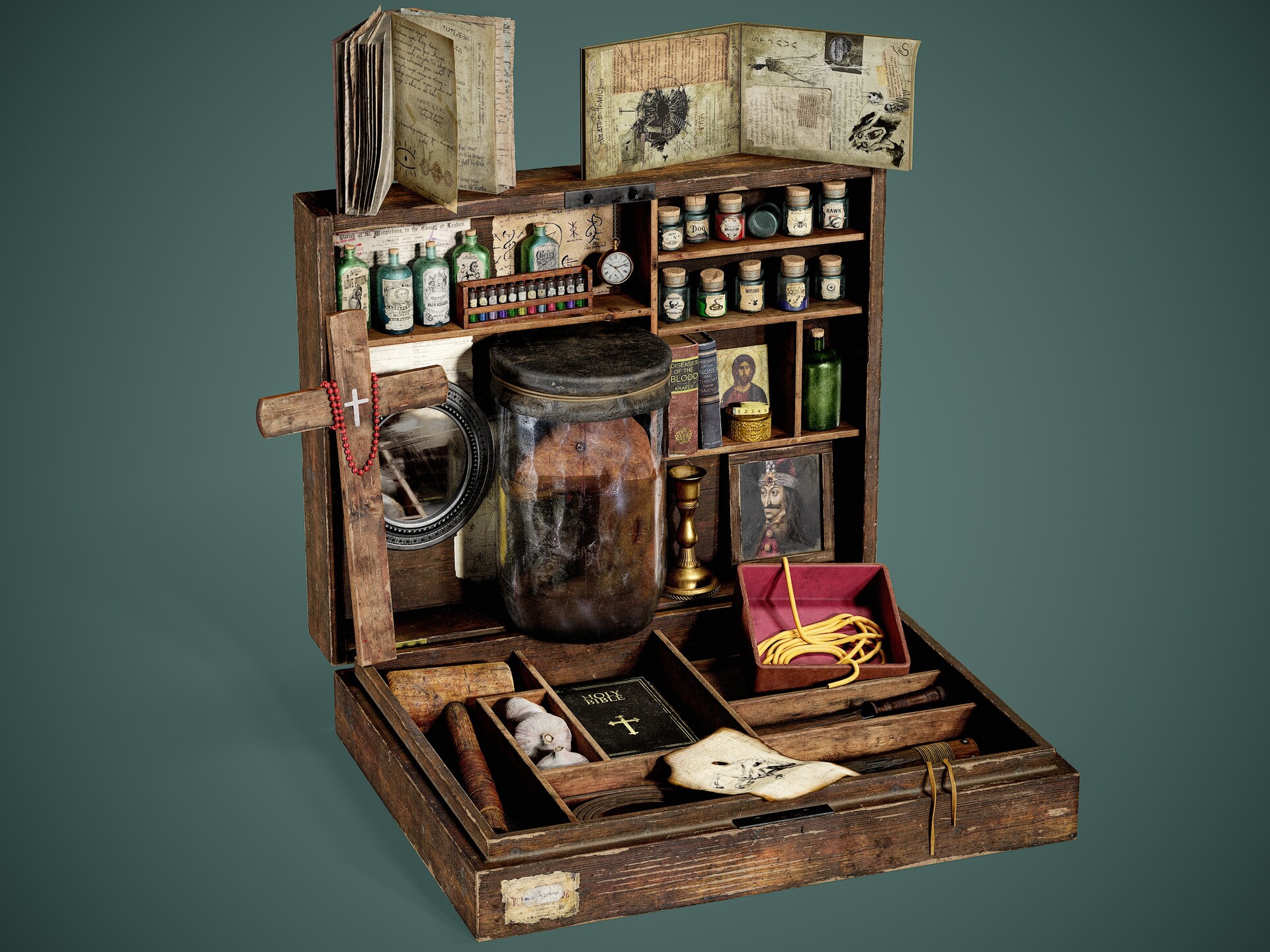 Разван Миндра рассказал, как он создал свой увлекательный набор для истребления вампиров в ZBrush, Maya, Substance 3D Painter и Marmoset Toolbag, объяснив, как поместить жуткого маринованного монстра в банку и придать пропсам состаренный вид.