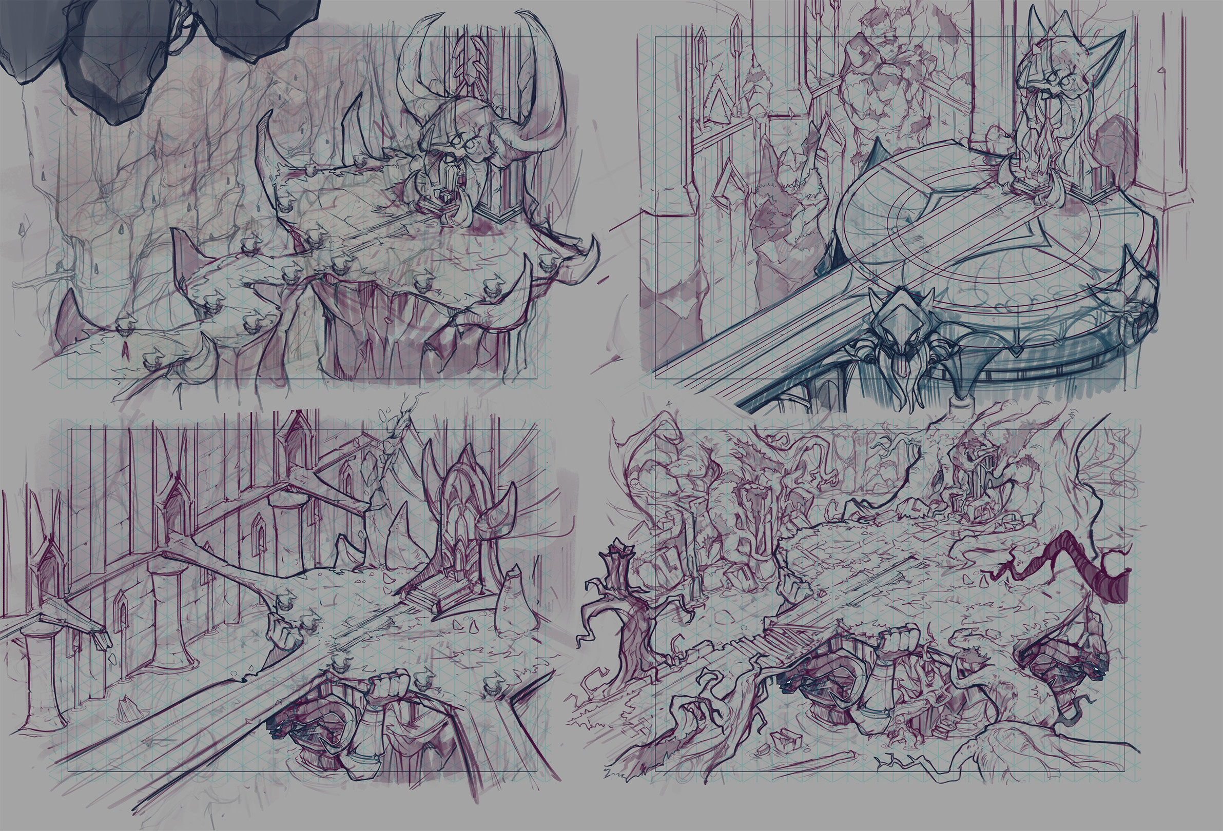 В статье примеры концпет артов, недавний процесс создания корыстного саппорта-манипулятора по заметкам концепт-художника, а ещё много зарисовок и скетчей художников из Riot Games.