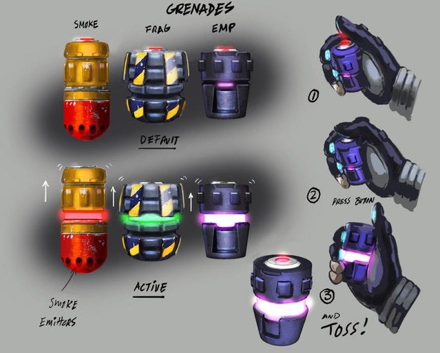 Здесь можно увидеть 3 типа гранат. Планируется вторичный механизм, чтобы они не взорвались в ваших карманах :)