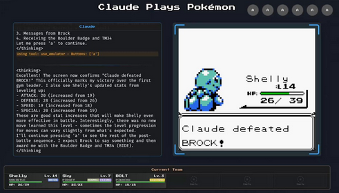 Модели дали возможность управлять приставкой. В левой части экрана отображались «мысли» Claude, а в правой — его действия в игре.