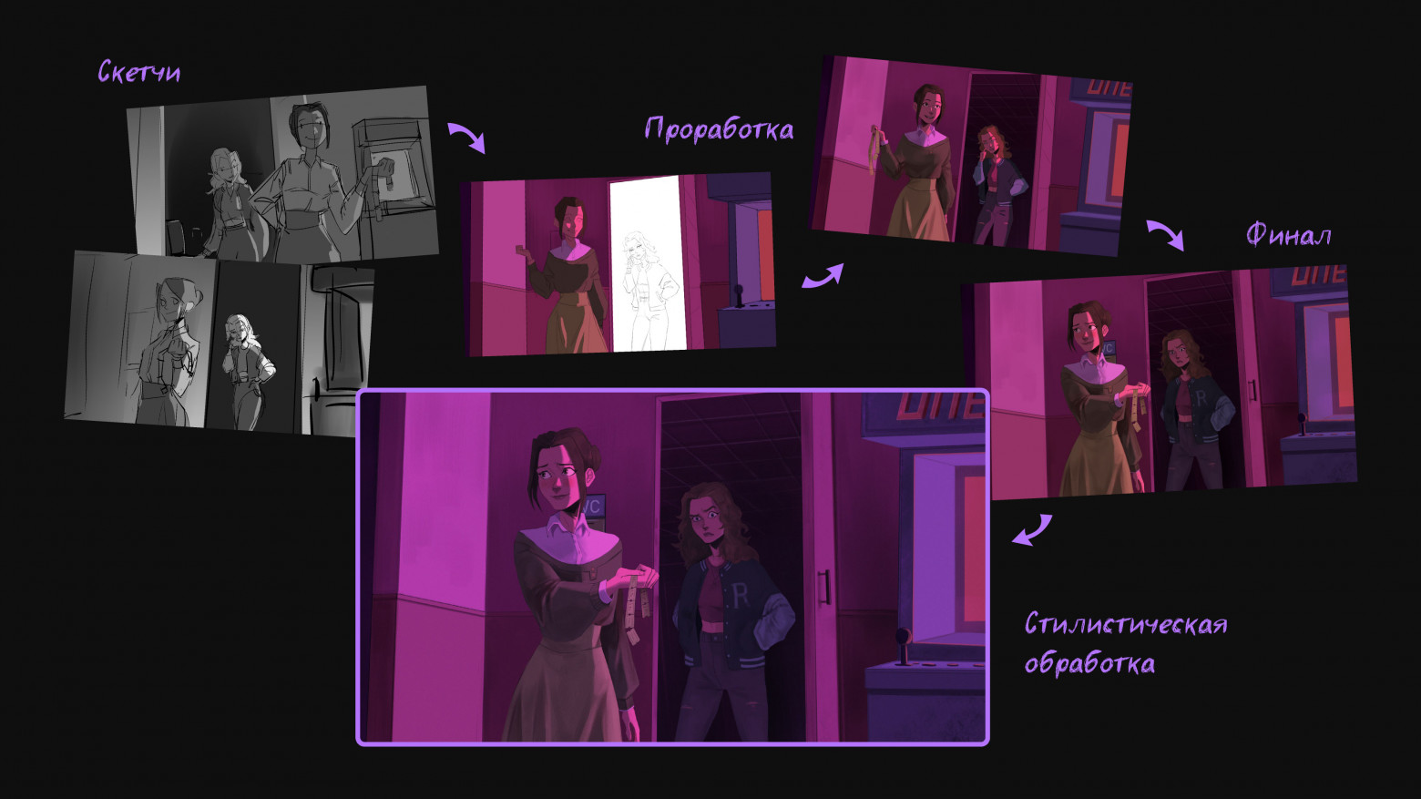 Демонстрация поэтапного создания одного кадра новеллы/