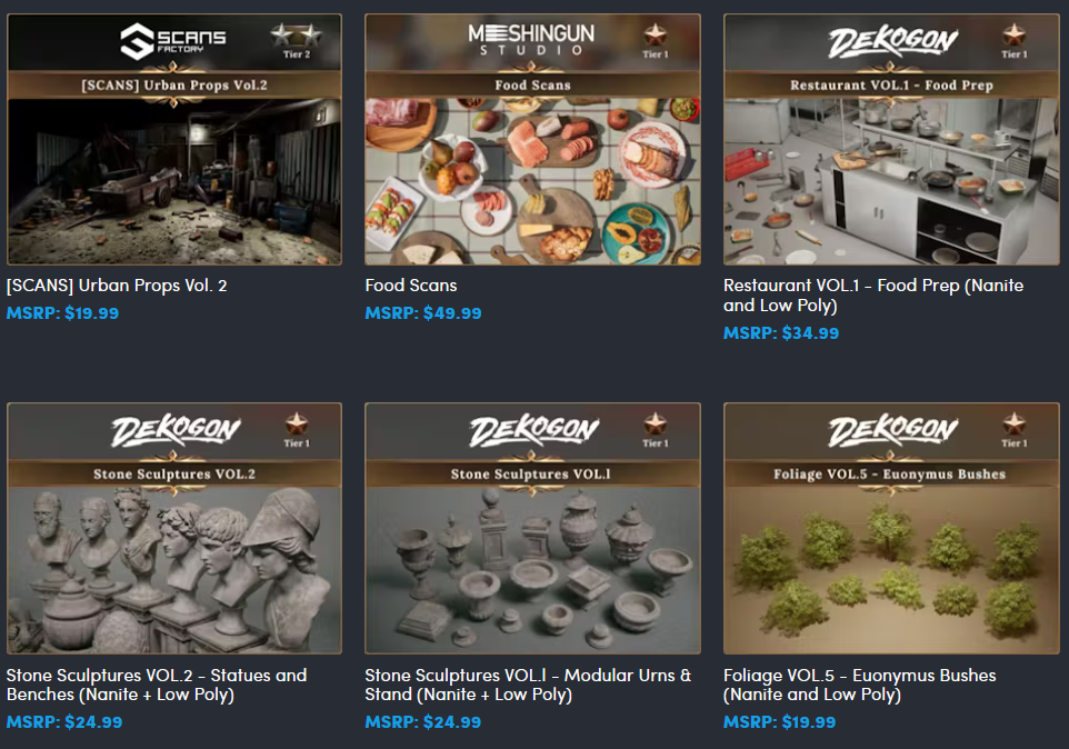 Коллекция из более чем 4000 высококачественных ассетов для Unreal Engine от Meshingun Studio, SCANS Factory, Dekogon и Prophaus.