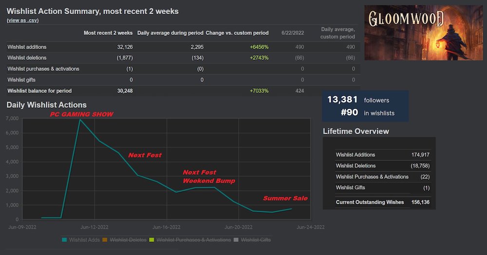 Принято считать, что 100 добавлений в список желаемого в день — это очень хорошо. В течение года это может превратиться в значительную сумму, и, если её дополнить ивентами, мощным социальным охватом, достигнув более 50 000 к моменту запуска, безусловно, жизнеспособно даже для самой маленькой студии разработки.