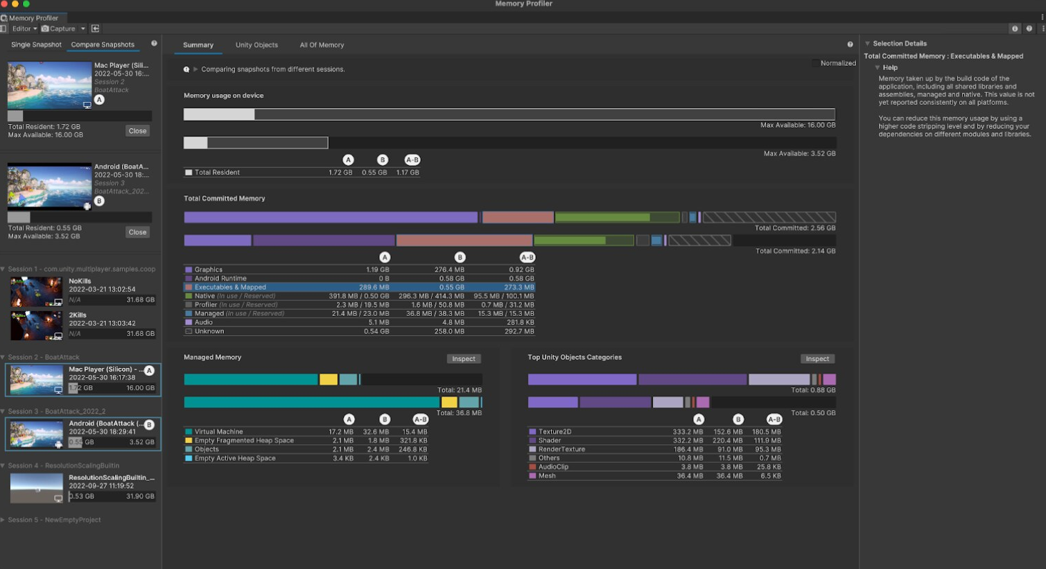 Команда, работающая над профилировщиком, сообщила, что с сентября 2022 года пакет профилировщика памяти перешёл из экспериментального в проверенный и теперь доступен для всех, кто использует Unity 2022.2 Tech Stream. В посте немного подробностей про инструмент.