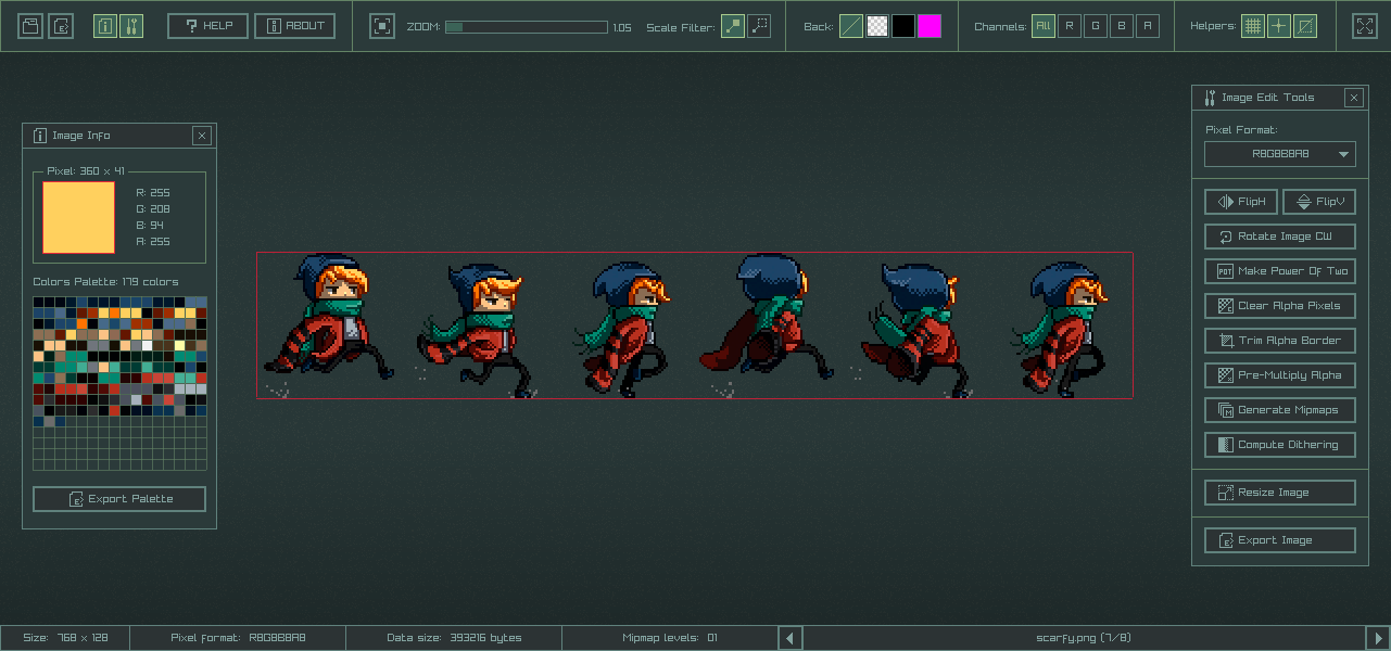 • Пиксельная сетка в 208×405. В коде масштабирование реализовано умножением на 2/3, а затем округляется до целых значений в финальном буфере с масштабом 3x.