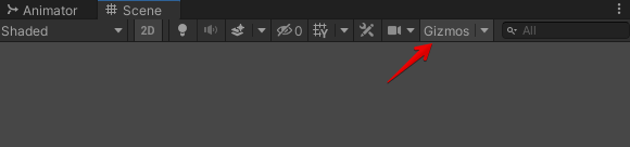 Было бы неплохо как-то визуализировать рейкаст. Как минимум, хочется видеть, как далеко он бьёт. Для этого можно воспользоваться событием OnDrawGizmos, которое позволяет в редакторе рисовать отладочную информацию.
