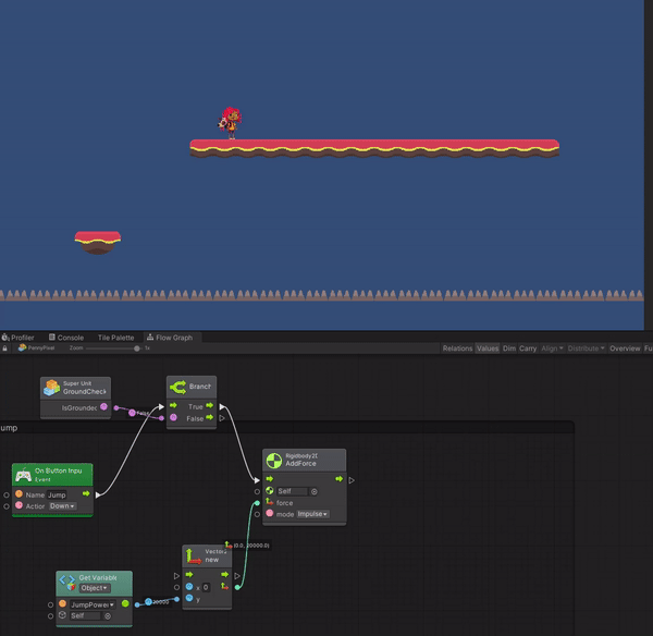 Теперь в графе персонажа нужно немного изменить узлы, обрабатывающие прыжок.