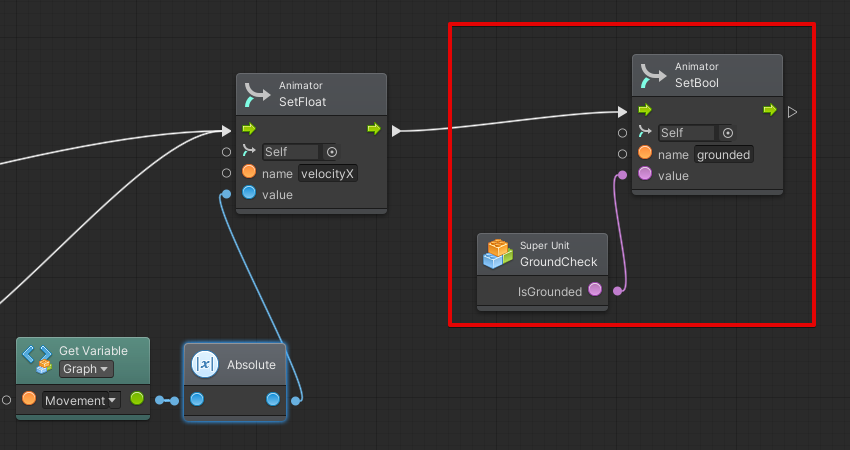 1. Перетаскиваем на граф персонажа граф GroundCheck.