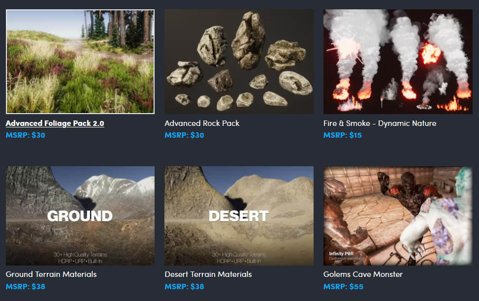 Пак состоит из 27 Unity ассетов от NatureManufacture.