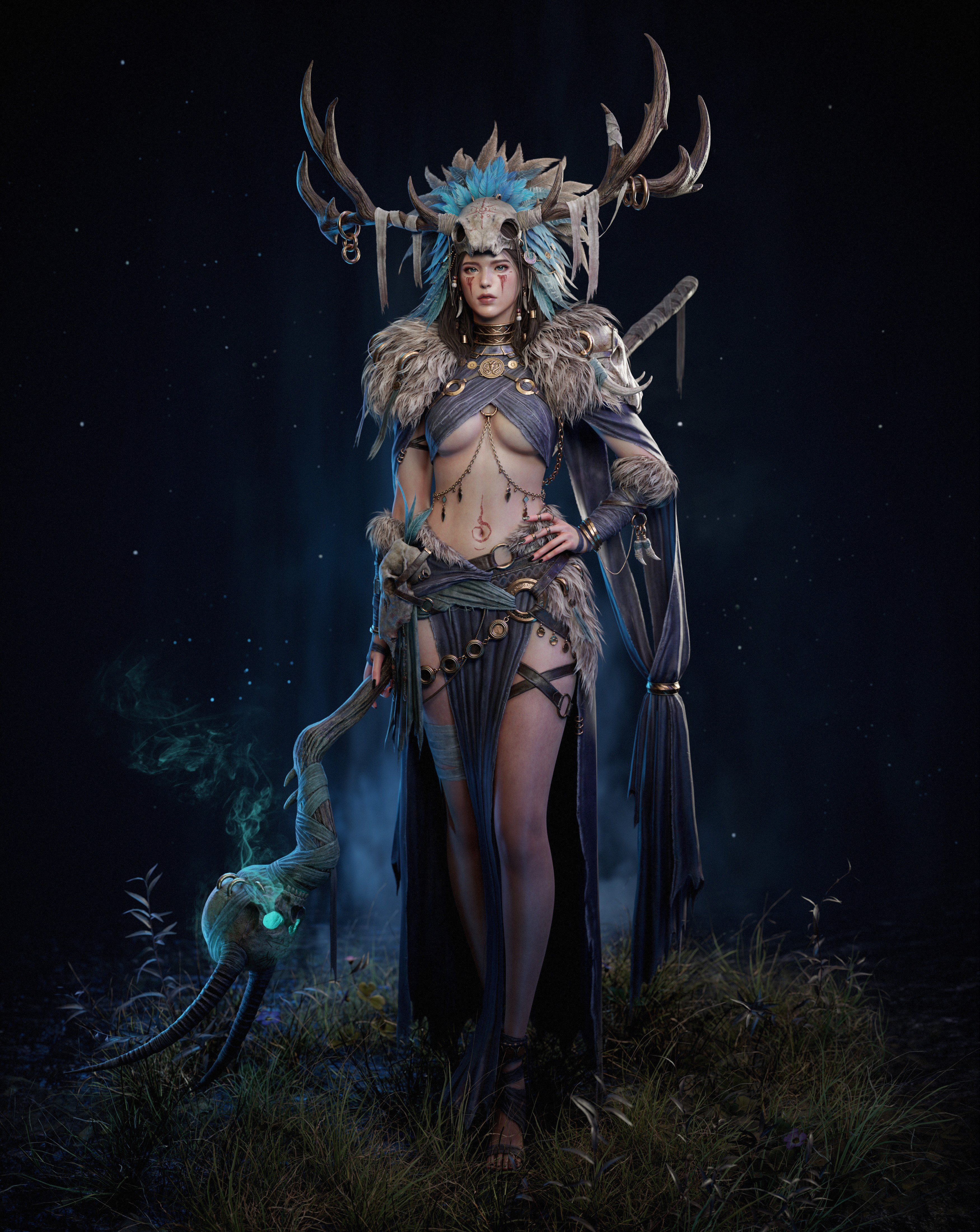 🇬🇧 Создание девушки-шамана с замысловатой одеждой и аксессуарами в 3D