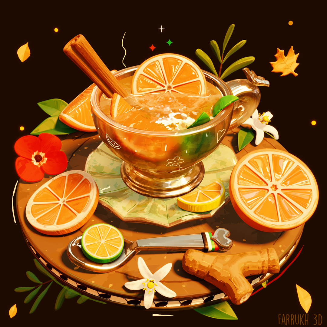 🇬🇧 Как создать восхитительный стилизованный апельсиновый холодный чай в Blender