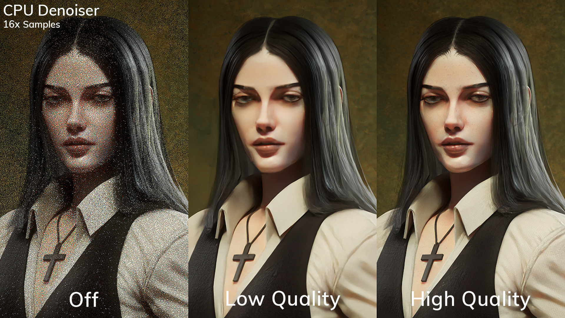Добавили аппаратно-ускоренный денойз рендеринга на графических процессорах Nvidia RTX и улучшили денойз, работающий на CPU.