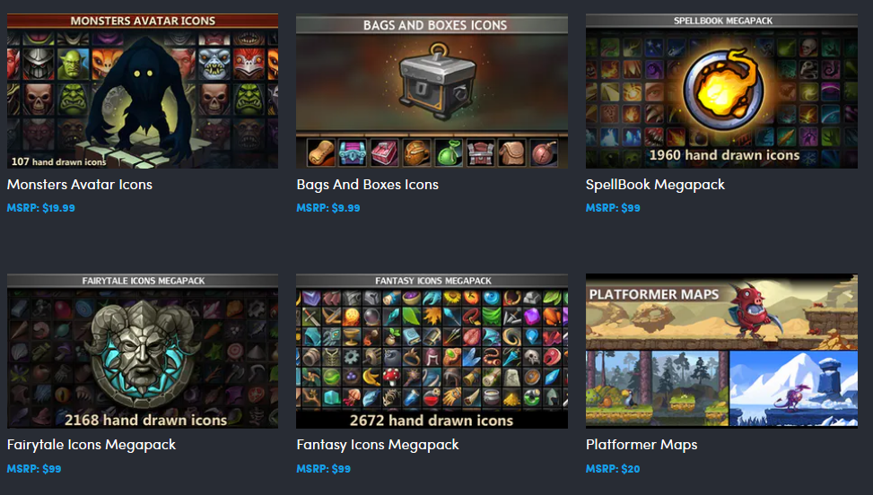 Новый здоровенный бандл Game Dev Arts Megapack Bundle с ассетами для разработчиков игр