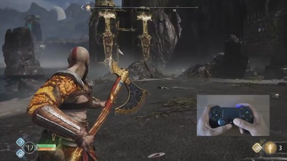 В God of War используется управление, аналогичное большинству шутеров от первого лица, чтобы сделать метание топора интуитивно понятным и доступным большему числу игроков.