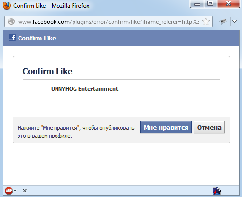 Был у нас сайт, все кнопки социальных сетей работали. Внезапно перестала работать кнопка от FB. При нажатии на Like — popup окно появляется и быстро исчезает, текст кнопки становится «Подтвердите».