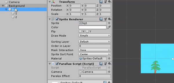 1 2 3 4 5 6 7 8 9 10 11 12 13 14 15 16 17 18 19 20 21 22 23 24 | public class ParallaxScript : MonoBehaviour { private float startPos, length; public GameObject camera; public float paralaxEffect; void Start() { startPos = transform.position.x; length = GetComponent<SpriteRenderer>().bounds.size.x; } void Update() { float temp = camera.transform.position.x * (1 - paralaxEffect); float dist = camera.transform.position.x * paralaxEffect; // двигаем фон с поправкой на paralaxEffect transform.position = new Vector3(startPos + dist, transform.position.y, transform.position.z); // если камера перескочила спрайт, то меняем startPos if (temp > startPos + length) startPos += length; else if (temp < startPos - length) startPos -= length; } } |
