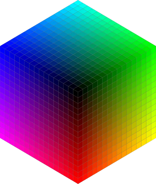 Следующие два изображения представляют две противоположные стороны цветового пространства RGB. С чёрным в координатах (0x0, 0x0, 0x0), красным в (0xF, 0x0, 0x0), зелёным в (0x0, 0xF, 0x0) синим в (0x0, 0x0, 0xF) и белым в (0xF, 0xF) 0xF). Эти красочные изображения хорошо иллюстрируют творческую свободу, предоставленную разработчикам графики.