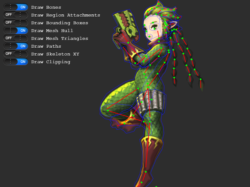 Эта версия будет правильно батчить Спайны склета, где это возможно, потенциально экономя сотни вызовов отрисовки. Плагин полностью документирован и экспортирует как отладочные, так и минимизированные файлы, подходящие для импорта ES6. Весь плагин размером всего 68 КБ (min + gz), или 57 КБ, если вам нужен только рендер Canvas! Подробности можно узнать на сайте Esoteric Software.