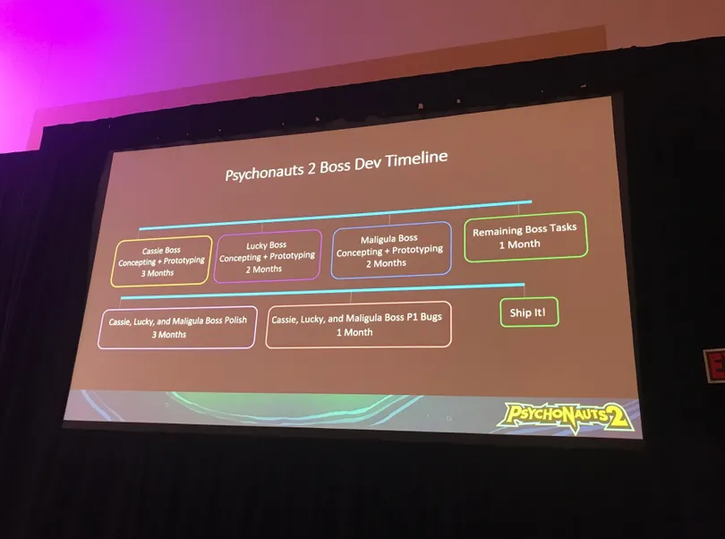 Программист Double Fine Ребекка Вессал продемонстрировала высокомодульную систему «манёвров», которую команда разработала для того, чтобы в сжатые сроки сразиться с невероятными боссами в игре.