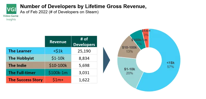 Только 10% разработчиков Steam когда-либо зарабатывали более 100 тысяч долларов. В статье рассказывается, что они делают, чего не делают другие разработчики. Обзор охватывает тип издания, жанровую направленность, количество разработанных игр и многое другое.