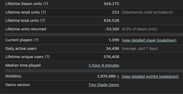 97% положительных отзывов, интересное соотношение DAU к CCU.