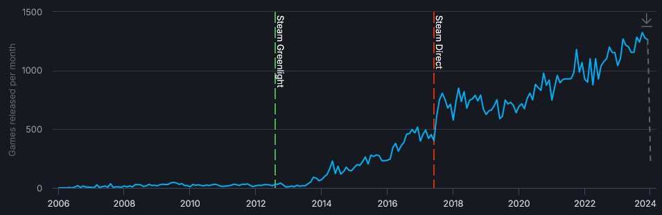 SteamDB: В 2023 году в Steam вышло более 14к игр