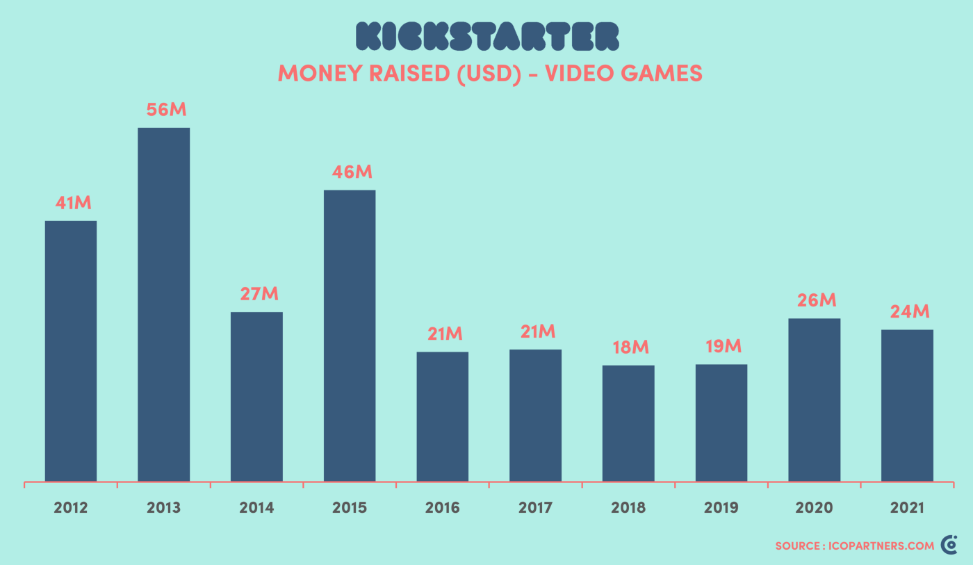 Как передаёт Ico Partners, за 2021 год на платформе успешно профинансировали 441 игровых проекта (в 2020 было 429 ), собрав суммарно 24 миллиона долларов (при этом, в 2020 было собрано 26 миллионов, хотя проектов было меньше).