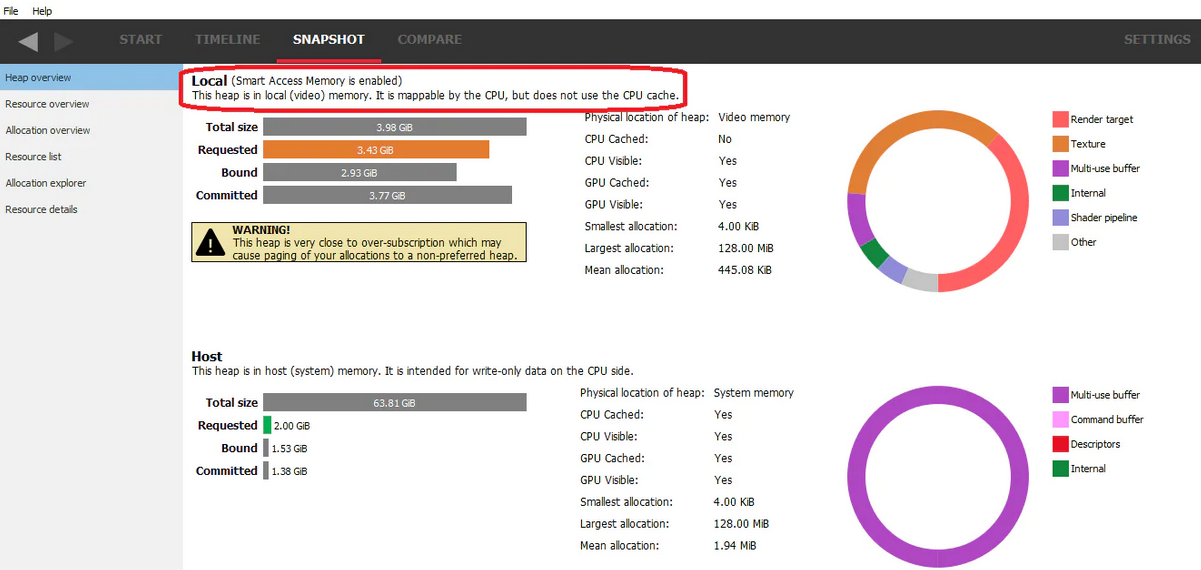 Начиная с этой версии Radeon Memory Visualizer (RMV) обеспечивает поддержку Smart Access Memory (SAM). SAM — это функция AMD, которая может повысить производительность графически интенсивных приложений, предоставляя ЦП прямой доступ ко всей доступной видеопамяти.
