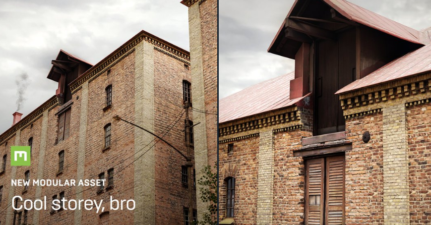 Новая коллекция включает 20 ассетов, 2 рендера и 2 референса. Команда Quixel каждый день добавляет в эту коллекцию новые ассеты: модульную крышу здания, окна, стены, фундаментные стены, заблокированные окна, двери, отделку пола и колонны.