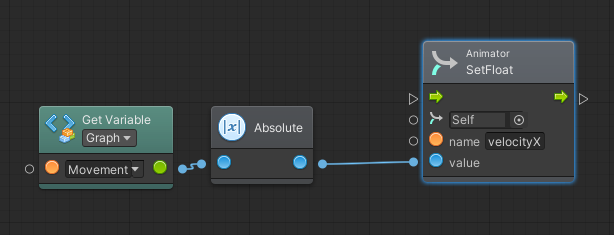 На графе, как я уже сказал, нам нужно всего лишь передать значение скорости аниматору и записать в переменную velocityX.