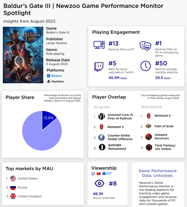 Newzoo: Россия оказалась на втором месте по размеру аудитории Baldur’s Gate 3